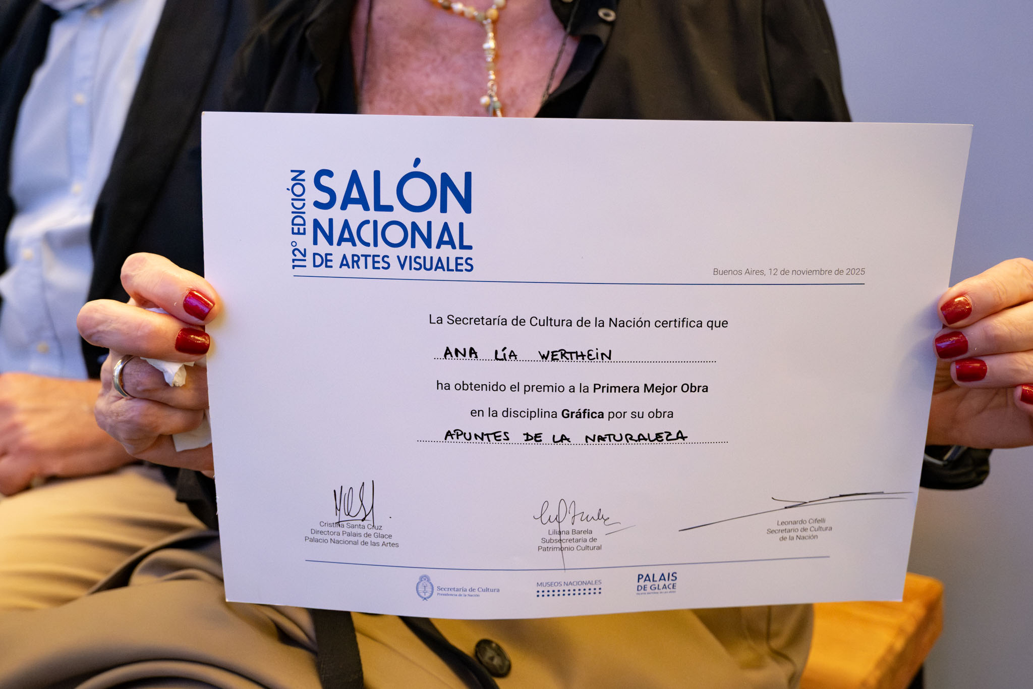 Ana Lía Werthein fue distinguida con el Primer Premio en la categoría Gráfica del 112° Salón Nacional de Artes Visuales por su obra Apuntes de la naturaleza.